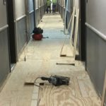 Mold remediation from soldier barracks rooms on three floors, Demo/install new wood flooring, removed/ kitchen cabinets in several rooms located in building 10037;